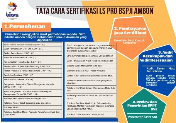 - Biaya sertifikasi tidak dapat dikembalikan dan pencabutan Sertifikat Produk Penggunaan Tanda SNI akan dipublikasikan oleh LSPro BSPJI Ambon.